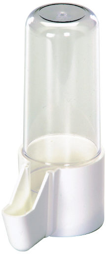Een wit drinkfonteintje voor de vogel. Om in de kooi te plaatsen.