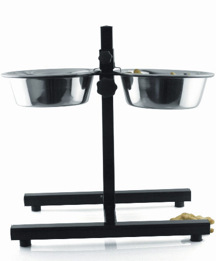 De hondenbar met rvs voerbakken maakt het eten voor alle grote en oude honden makkelijker. De houder van de dubbele voerbak kan traploos in de gewenste hoogte worden ingesteld. Zo kan uw hond in een comfortabele houding in de voor hem optimaal ingestelde hoogte ontspannen eten en drinken, zonder zich te ver naar voren te moeten buigen. Daardoor voorkomt de hondenbar bij uw hond pijnlijke verrekkingen bij het eten en ontziet de gewrichten van de voorpoten en zijn tussenwervels. Door de horizontale houding van de kop bij het eten hangen de oren van langorige hondenrassen minder in de voerbak. Bovendien vermindert een optimale instelling kwijlen en knoeien evenals verslikken, wat vaak bij uw hond kan voorkomen bij haastig eten op bodemhoogte. Door de hoogteverstelbaarheid is de dubbele voerbakstaander een perfecte aanschaf van puppy tot volgroeide hond, omdat de hoogte aan uw dier kan worden aangepast.