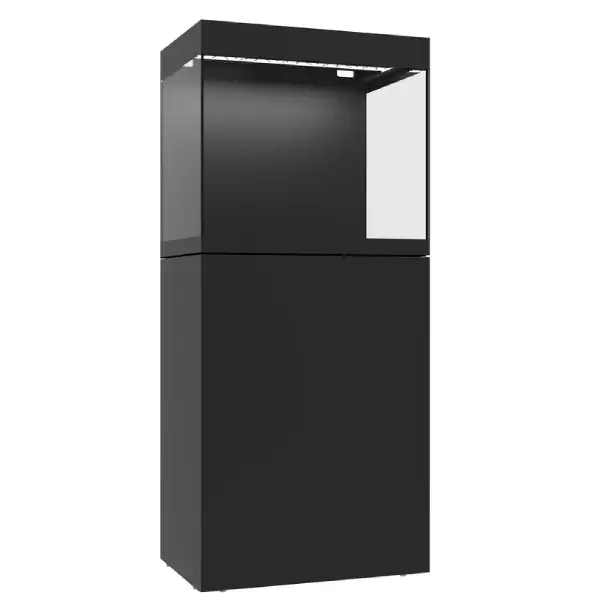 Un couvercle en verre noir intégré est là pour cacher le matériel, tout en gardant vos poissons en sécurité. Il peut s’ouvrir des deux côtés et est totalement amovible (pour installer une rampe d’éclairage surélevée par exemple).