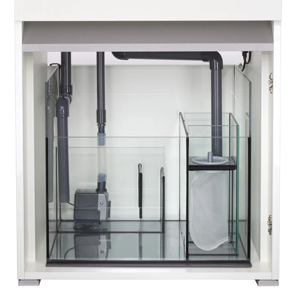Le système fonctionne silencieusement grâce au puits de drainage breveté et silencieux. La pompe de remontée EHEIM compactON 3000 est incluse et toute la tuyauterie et les câbles sont pré-assemblés pour le “plug & play”.