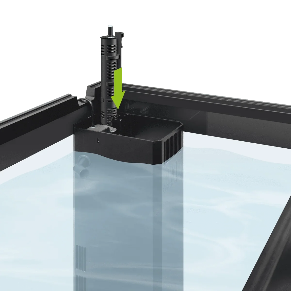Maintenez l’eau de votre aquarium Lido 200 LED à bonne température grâce au chauffage régulateur JUWEL AquaHeat Pro 200 W. Pour une question d’esthétique, le chauffage est invisible dans l’aquarium, puisqu’il est intégré au boîtier du filtre.