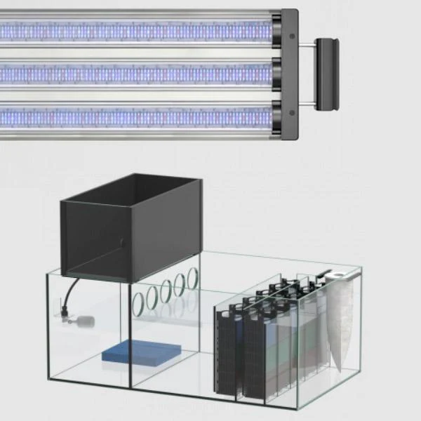 L’éclairage disponible en option est le modèle Easy LED 3 Light 2.0 AQUATLANTIS, qui dispose de trois rampes LED. Chaque rampe possède deux canaux de lumière indépendants.