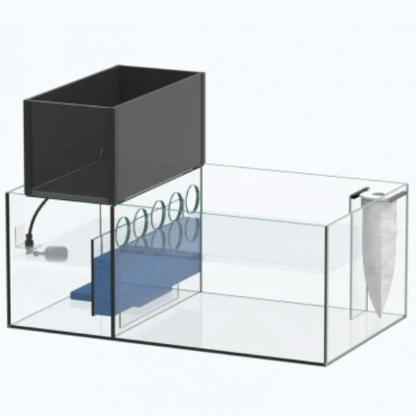 Le bac à décantation Sump SW (Salt Water) pour aquarium d’eau de mer comprend un réservoir d’eau, une mousse de support pour pompe afin d’atténuer considérablement les vibrations et un sac filtrant.