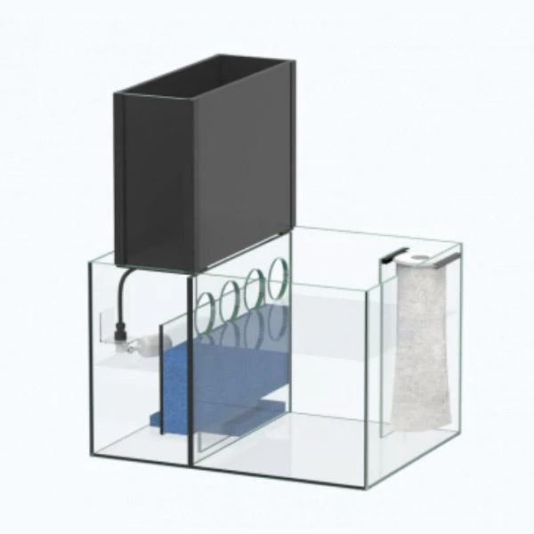 Le bac à décantation Sump SW (Salt Water) pour aquarium d’eau de mer comprend un réservoir d’eau, une mousse de support pour pompe afin d’atténuer considérablement les vibrations et un sac filtrant.