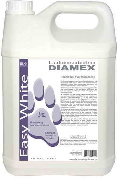 Shampoo voor witte honden. Makkelijk te gebruiken, zeer zacht voor haar en huid. Maakt het haar zijdeachtig en stralend.