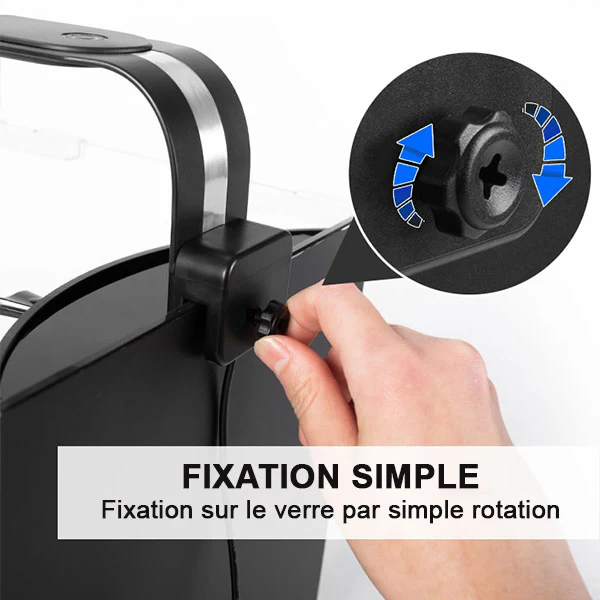 | Fixation | Support ajustable sur verre jusqu’à 8 mm d’épaisseur |