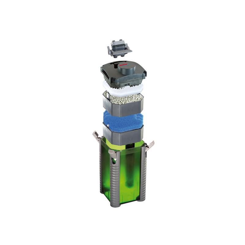 Avec son prédécesseur, le professionnel, la gamme EHEIM a lancé la toute première gamme de filtres externes avec une forme de base carrée. Avantages : gain de place (parce que le filtre s’adapte aux coins), grande stabilité et grand volume de filtre.