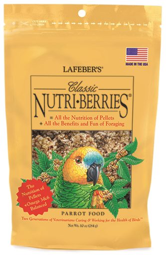 Amazone-papegaaien, Afrikaanse grijzen, Pionus en andere vogels kunnen gemakkelijk worden gelezen als het gaat om voedselvoorkeuren. Ze zouden kunnen krijsen van verrukking, een vrolijke baarsdans doen of een oogspeld doen wanneer ze een favoriet voedsel aangeboden krijgen. De uitdaging is dat papegaaien dit enthousiasme niet altijd tonen als het gaat om gezonde selecties – wanneer was de laatste keer dat uw vogel enthousiast werd over een kom vol pellets? Pellets bieden volledige voeding, maar niet veel qua smaak of textuur. Daarom hebben we Parrot Nutri-Berries ontwikkeld om het beste van twee werelden te bieden: uitgebalanceerde voeding die leuk is om te eten en vol van smaak. Wij vinden ook dat papegaaien met hun voer moeten spelen. Nutri-Berries hebben een ronde, gestructureerde besvorm die perfect is voor uw papegaai om vast te houden en uit elkaar te trekken om te eten; een eenvoudige maar effectieve manier om de gezondheid van de voeten te bevorderen en om zijn tong en snavel te bewerken. We hebben een manier gevonden om ons voedsel qua voedingswaarde in evenwicht te brengen zonder in te boeten aan smaak of textuur zoals gewone pellets dat doen. Het Lafeber-verschil zit hem in het pellen. De zaden en granen in Nutri-Berries worden eerst gepeld en vervolgens bedekt met gestabiliseerde vitamines, gechelateerde mineralen en aminozuren, waardoor de voeding precies blijft waar hij hoort – bij elke hap. Parrot Nutri-Berries bevat ook 16,5% pellets die samengebonden zijn met gezonde ingrediënten, en ze bieden uitgebalanceerde Omega 3 en 6 essentiële vetzuren om het immuunsysteem van uw vogel te versterken en om een gezonde huid en veren te bevorderen. Onze voedingsmiddelen zijn van nature geconserveerd en vrij van kunstmatige kleurstoffen, dus u kunt ze met een goed gevoel aan uw papegaai aanbieden. Uitzonderlijk hoge acceptatie van vogels in vergelijking met gewone pellets Omega 3- en 6-vetzuren uitgebalanceerd Natuurlijk geconserveerd en gearomatiseerd Niet-GMO-formule Gemaakt in de VS op de Lafeber Family Farm Kan worden aangeboden als complete voeding of als gezonde traktatie