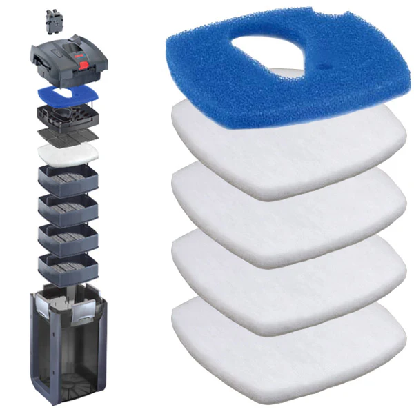 Ce Set de cinq mousses filtrantes EHEIM contient une mousse bleue de préfiltration et quatre coussins de ouates de remplacement, pour être utilisé avec les filtres externes suivants :