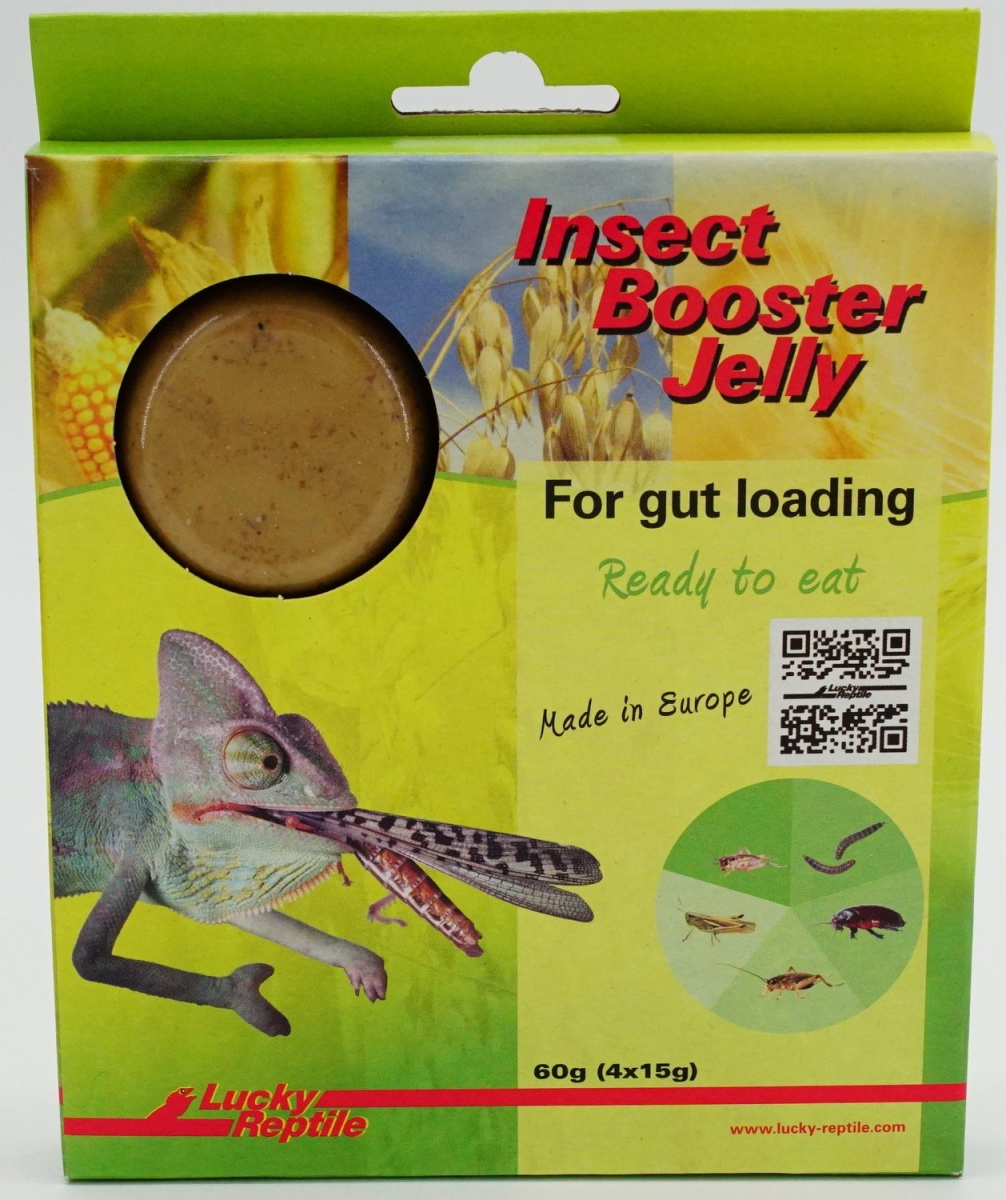 Lucky Reptile Insect Booster Jelly is volledige voeding voor voedingsinsecten. Door Lucky Reptile Insect Booster Jelly aan jouw sprinkhanen, krekels, meelwormen of dubia’s te voeren krijgen jouw reptielen of amfibieën extra vitamines en mineralen binnen. Ook blijven de voerdieren langer gezond.