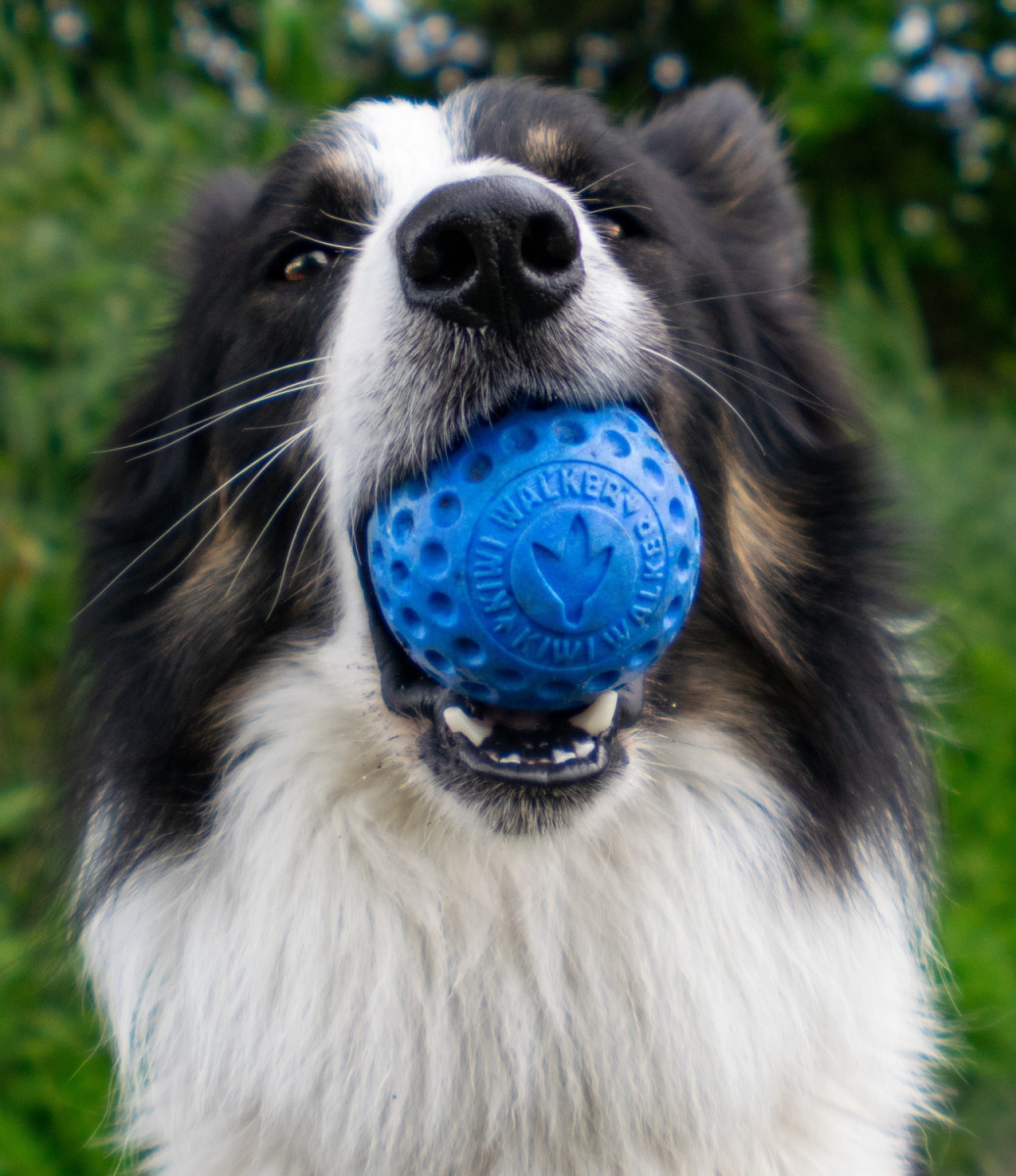 Duurzame bal met deukjes, gemaakt van hoogwaardig, tandreinigend TPR-schuim dat drijft, stuitert en bestand is tegen stevig kauwen. Verkrijgbaar in twee maten en vier leuke kleuren.