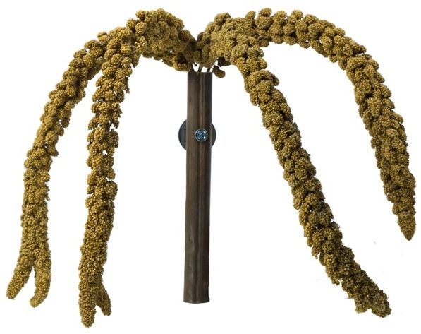 Back Zoo Nature French Millet Sprays is beter bekend als Franse trosgierst, een natuurlijke grassensoort met grote dikke halmen. Deze halmen bevatten veel gierstkorrels met een hoog acceptatie gehalte: vogels en kleine knaagdieren vinden het heerlijk om lekker aan te knabbelen! De trosgierst is een aanvullende voeding en is met zorg geoogst, gedroogd en verpakt om veilig te geven aan je kromsnavel of knaagdier. 100% natuurlijk en onbewerkt. De zaden van trosgierst zijn een vrij zachte zaadsoort en hierdoor ook zeer geschikt voor jongere vogels en knagers. Geschikt voor alle soorten vogels en zaadetende knagers zoals ratten, muizen, gerbils en hamsters.