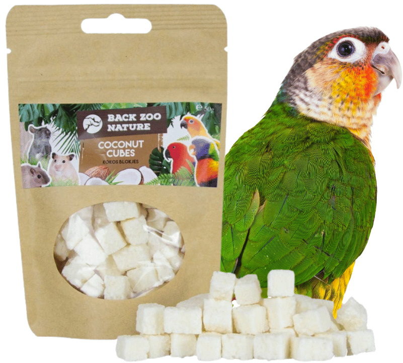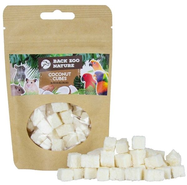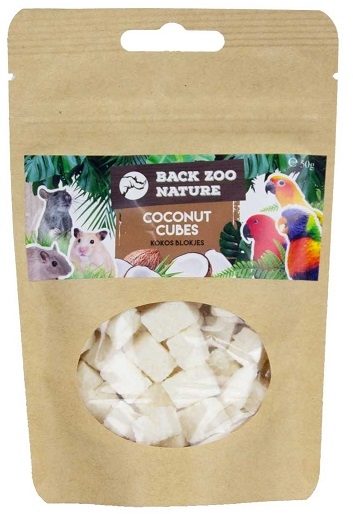 De Coconut Cubes van Back Zoo Nature zijn zorgvuldig gedehydrateerde kokosnoot blokjes, gemaakt van vers en natuurlijke kokos, speciaal voor vogels en knaagdieren.